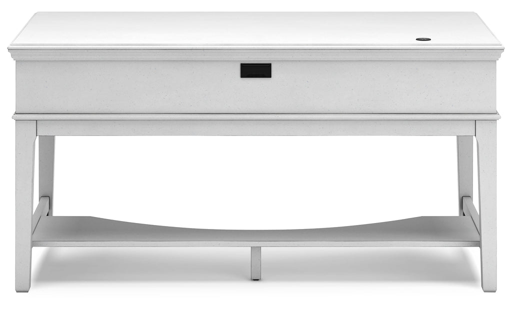 Showcasing a classic profile delightfully draped in a whitewash finish, this home office storage leg desk impresses with its traditionally relaxed design. But don't be fooled by appearances, because this picturesque piece comes with decidedly modern features such as dual USB charging ports and a raceway for cord management. Two storage drawers bring added functionality. This desk is simple, sophisticated and oh so perfect for your home office.