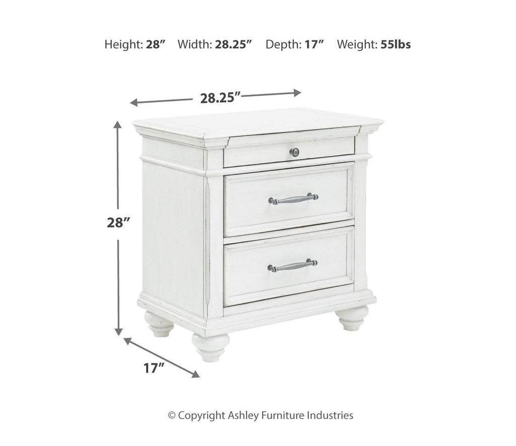 Give your retreat vintage charm and valuable bedside storage with this nightstand. In a beautifully distressed whitewash finish, two drawers and a smaller top accessory drawer will help you keep bedtime essentials nearby in casual style. Generously scaled moulding from top to bottom, along with bun feet and drawer handles with a transitional aesthetic, give this nightstand character—evoking the feel of a quaint cottage escape.