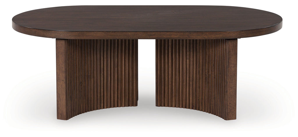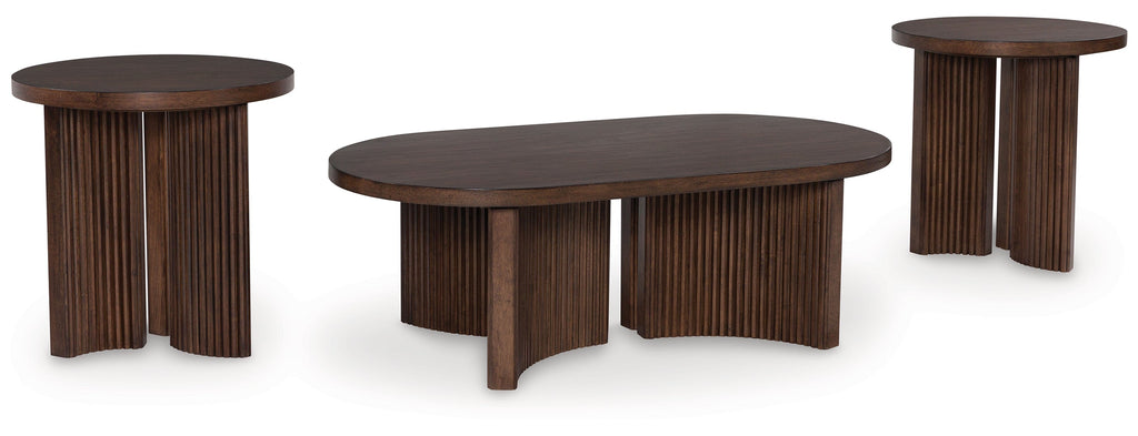 This occasional table package exemplifies casual contemporary design with an urban vibe. Its rich brown finish is warm and inviting, and decor looks that much sleeker when displayed on the thick tabletops. Trend-right reeded bases subtly nod to mid-century modern design. What a stunning reflection of your simple-meets-elegant sensibility.