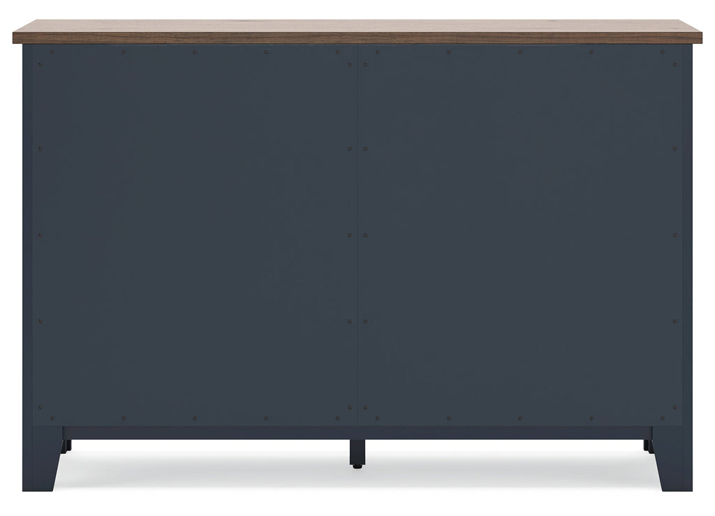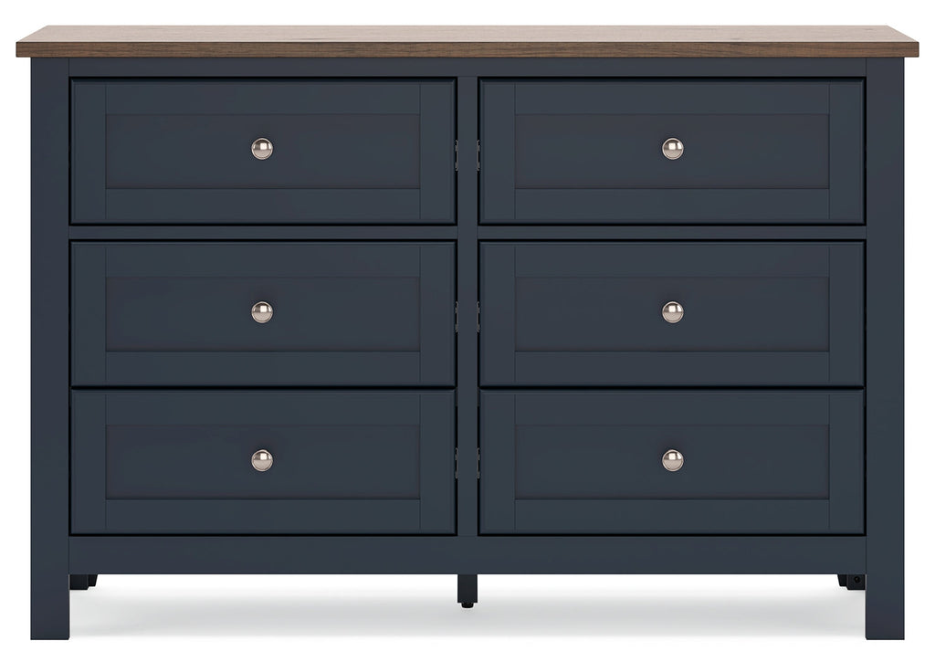 Add homespun charm to your restful retreat. A modern take on a timeless silhouette, this dresser pairs a dark slate blue finish with a light brown top. Drawer fronts and legs in a classic Shaker style bring an air of beautiful simplicity to the bedroom. Whether it's part of a charmingly curated guest suite or a casually carefree kids room, this dresser is a welcome addition.