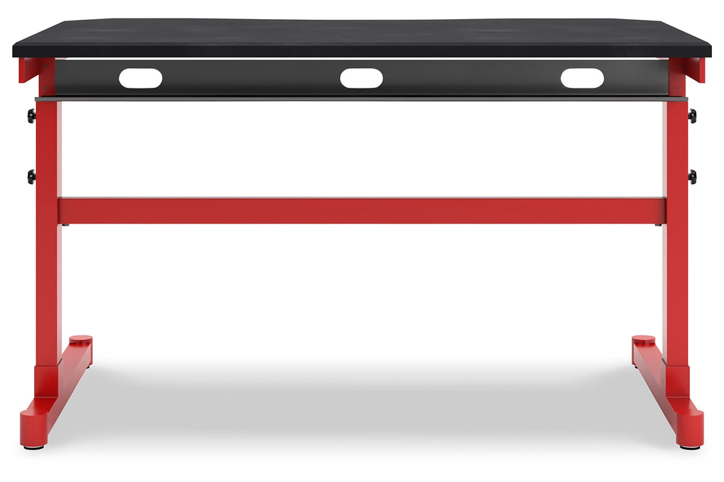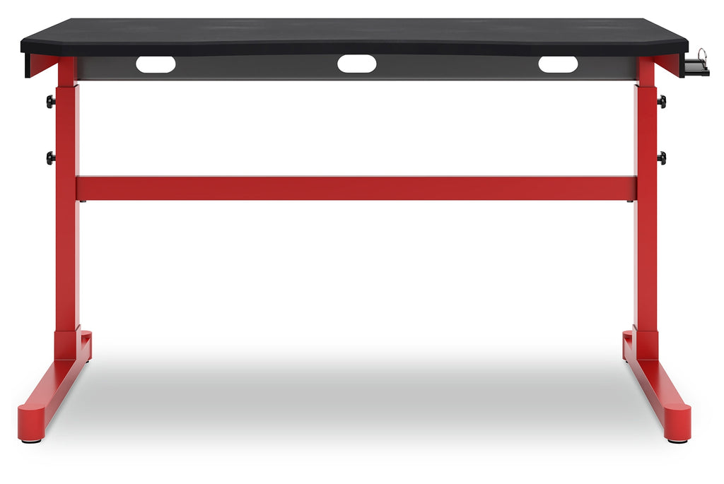 Work smarter (and look cool doing it) with the new-age efficiency of this adjustable height home office desk. Its streamlined design is ideal for gaming or as a general workstation. This super-sleek yet fully-loaded home office desk has a mouse pad surface cover and three height options for ultimate efficiency. The fantastic features also include a headset hanger conveniently mounted on the side, as well as a raceway tucked underneath for managing all your cords.