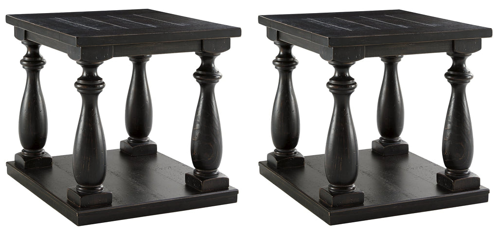 This end table set’s dramatic presence is exactly what an eclectically styled room needs. Solid wood planks and thick veneer merge seamlessly together in an oversized scale. Handsomely turned legs connect to a lower shelf.