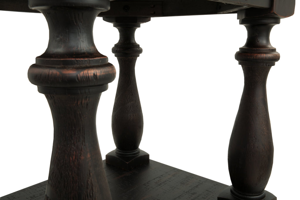 This occasional table set's dramatic presence is exactly what an eclectically styled room needs. Solid wood planks and thick veneer merge seamlessly together in an oversized scale. Handsomely turned legs connect to a lower shelf.