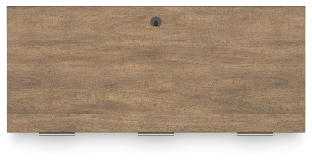 Sleek in its simplicity, this home office desk encourages you to work or study in style. Its mixed-material design brings a trendy, urban chic feel to your work area. Functional features keep the desk top clutter-free—easily tuck away essentials in the three drawers, and conceal power cords with the open raceway.