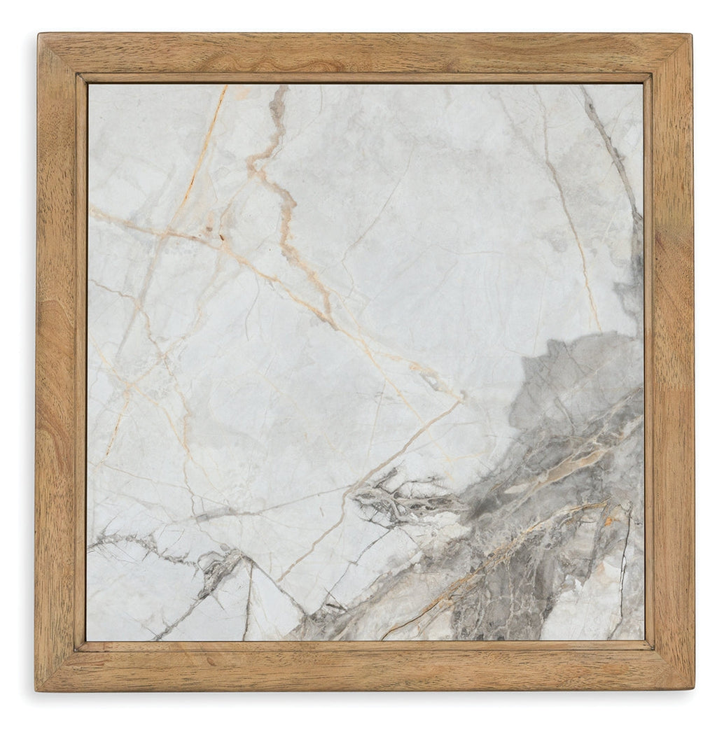 Crafted with the utmost attention to detail, this end table boasts premium materials that ensure both durability and elegance. The tabletop's sintered stone tile not only creates a visually appealing look but enhances the table's robustness. Whether you're hosting guests or unwinding with a steaming cup of coffee, this table instantly adds a touch of sophistication to your living space.