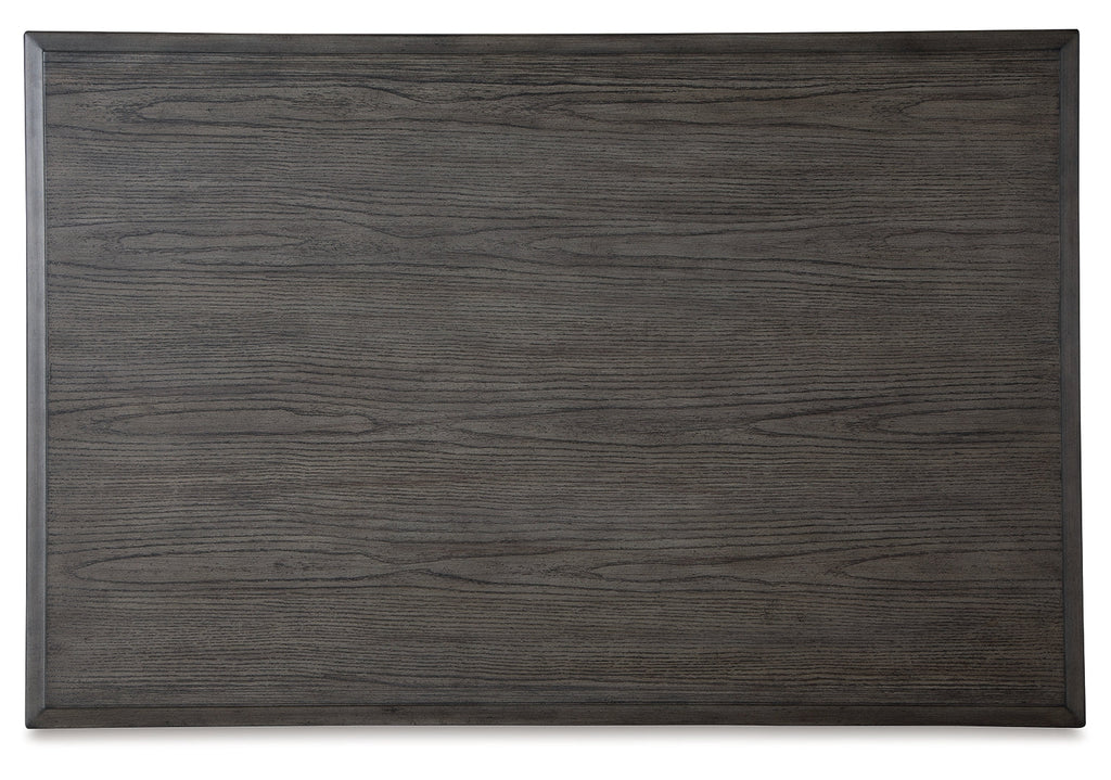 - Medium gray-brown finish with a blackened wood grain contrast; embossed wood grain texture