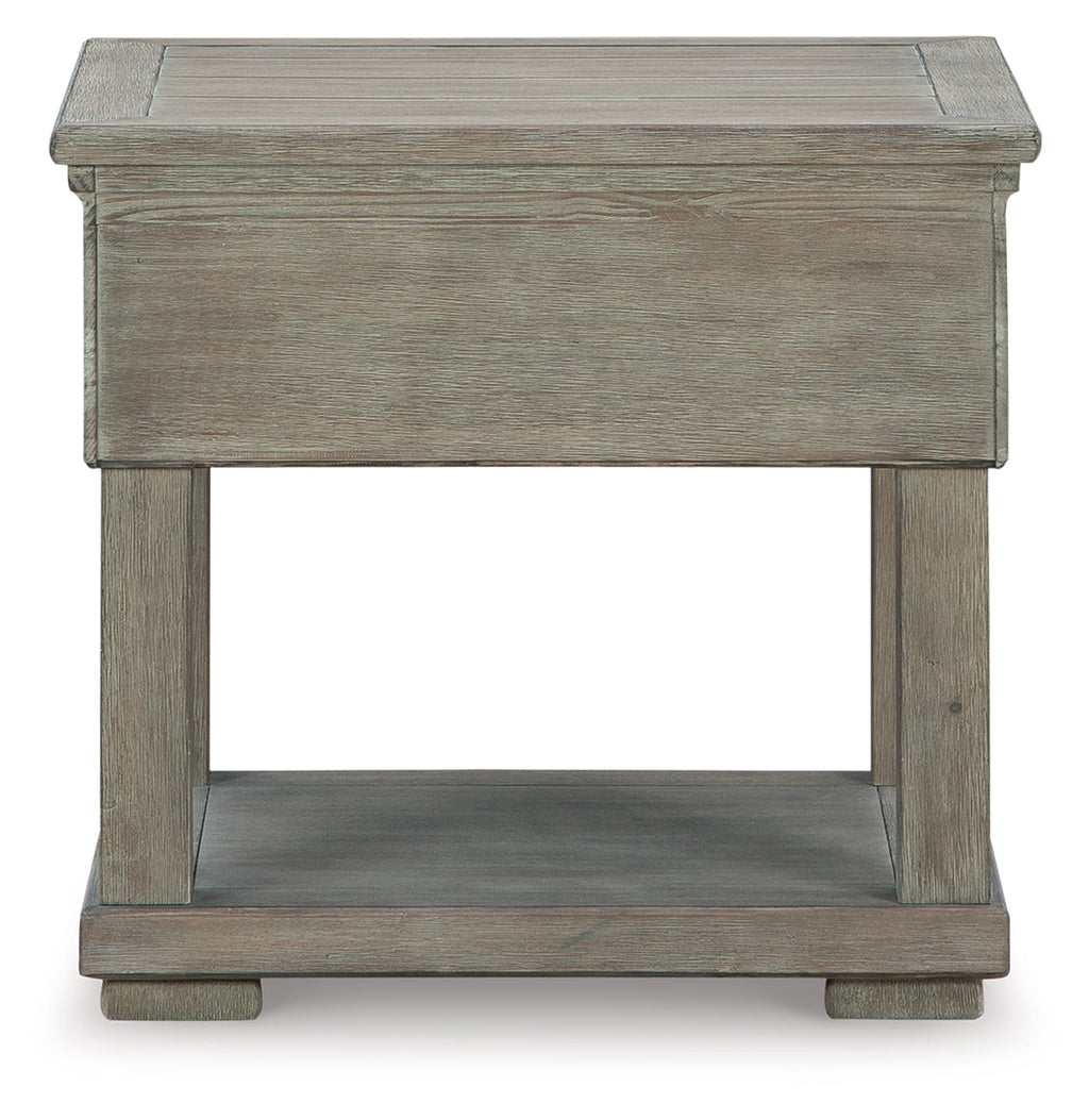 Lighten the look of your living space. This end table offers a casual traditional aesthetic, with natural wood undertones enhanced by a glazed bisque finish and wire-brushed texture. Its drawer and lower shelf add convenient storage and display space.