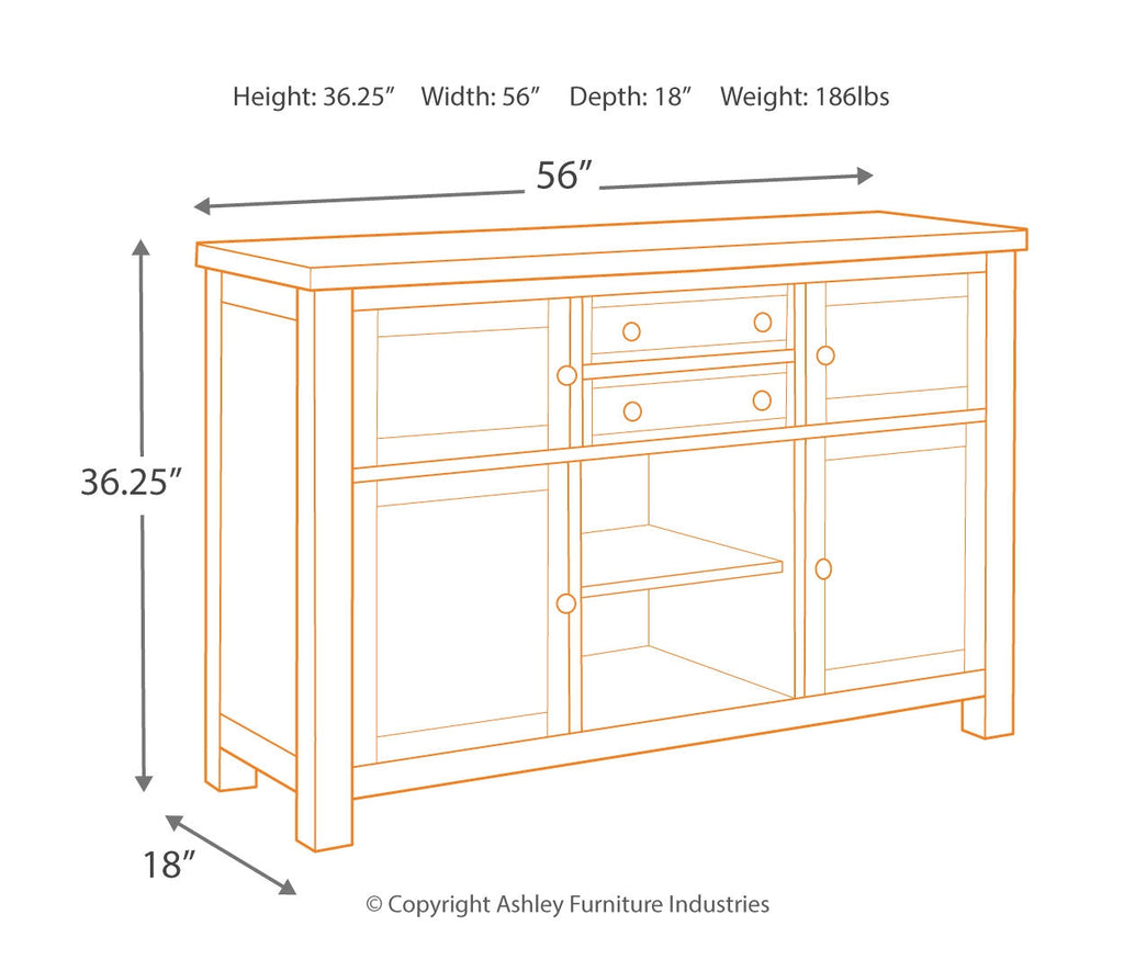 - InchesMetric : 56" W x 18" D x 36.13" H