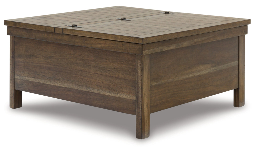 This lift-top coffee table might appear simple at first sight. But a closer look reveals beauty in the details. With a plank-effect tabletop, a tobacco brown finish and antiqued bronze-tone hardware, it’s simply beaming with charm. A handy lift top makes it easier than ever to eat, work or play from the comfort of your sofa. Crafted for form and function, this table will serve you well for years to come.