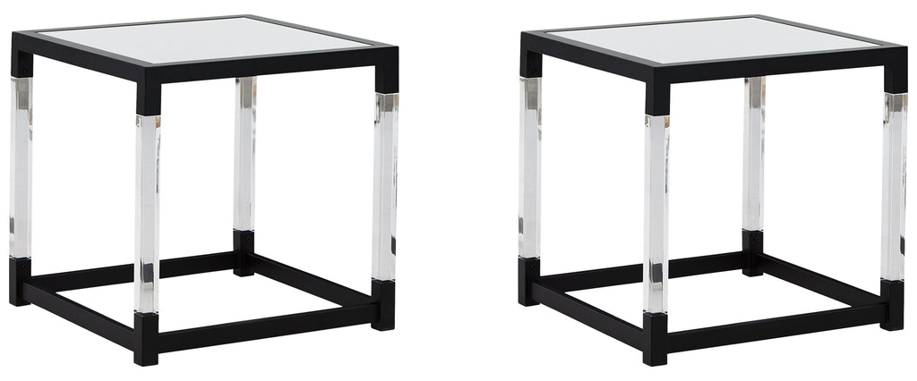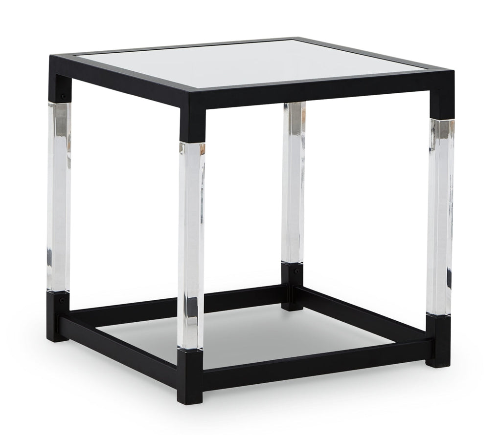 This modern end table set complements your sense of style in a cool, contemporary way. Glass, metal and acrylic elements combine to offer clean-lined design at a comfortably cool price. Dramatic transparent legs give a distinctive flair.