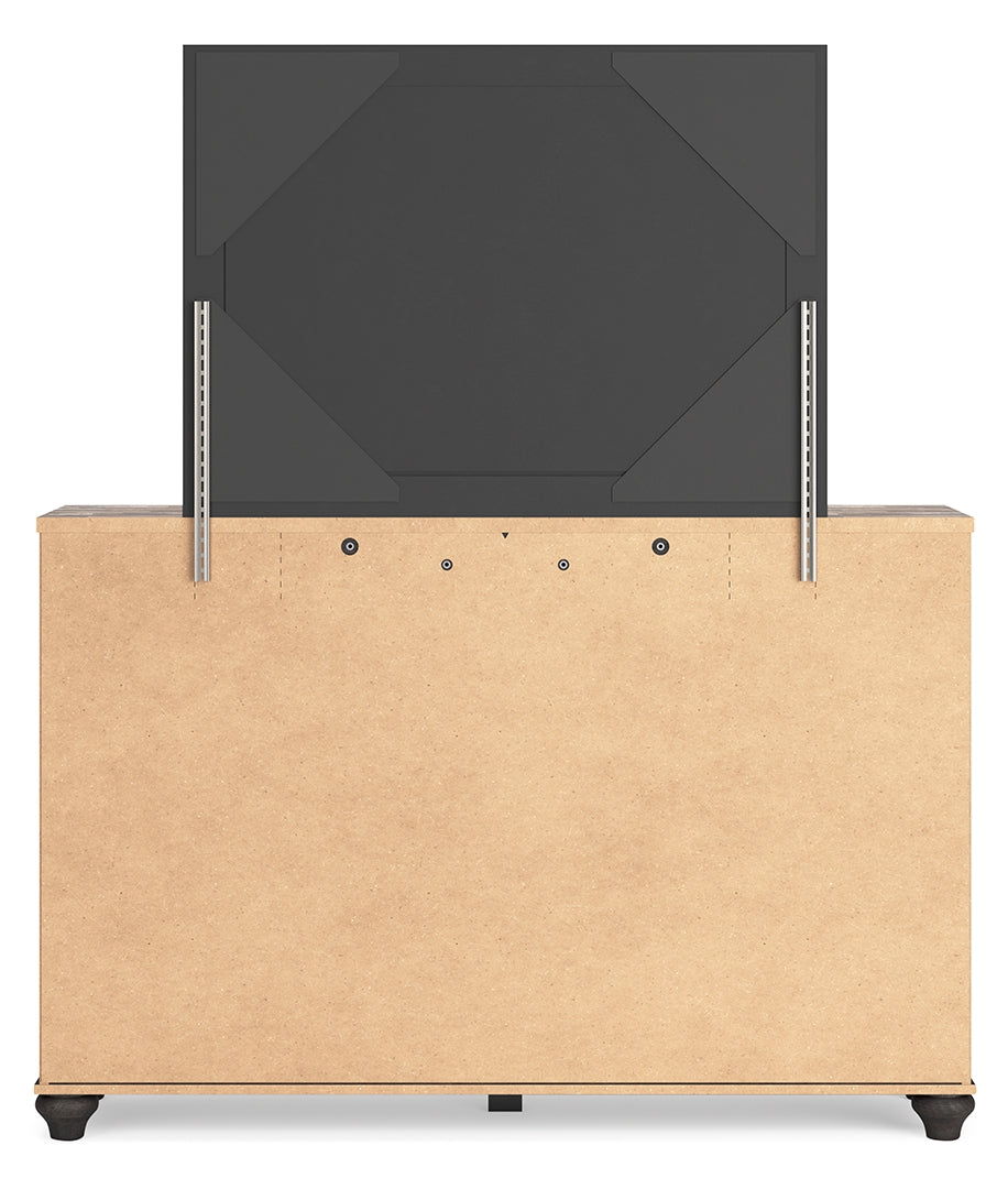 Charming French farmhouse aesthetics. Deep, industrial-inspired hues. This dresser and mirror balances beautiful simplicity with the luxurious details of yesteryear. The distinct two-tone finish is bold without sacrificing the piece's quaint character. And with smooth-gliding drawers for your assorted storage needs, the dresser's functionality goes hand-in-hand with your unique eye for vintage-inspired design.