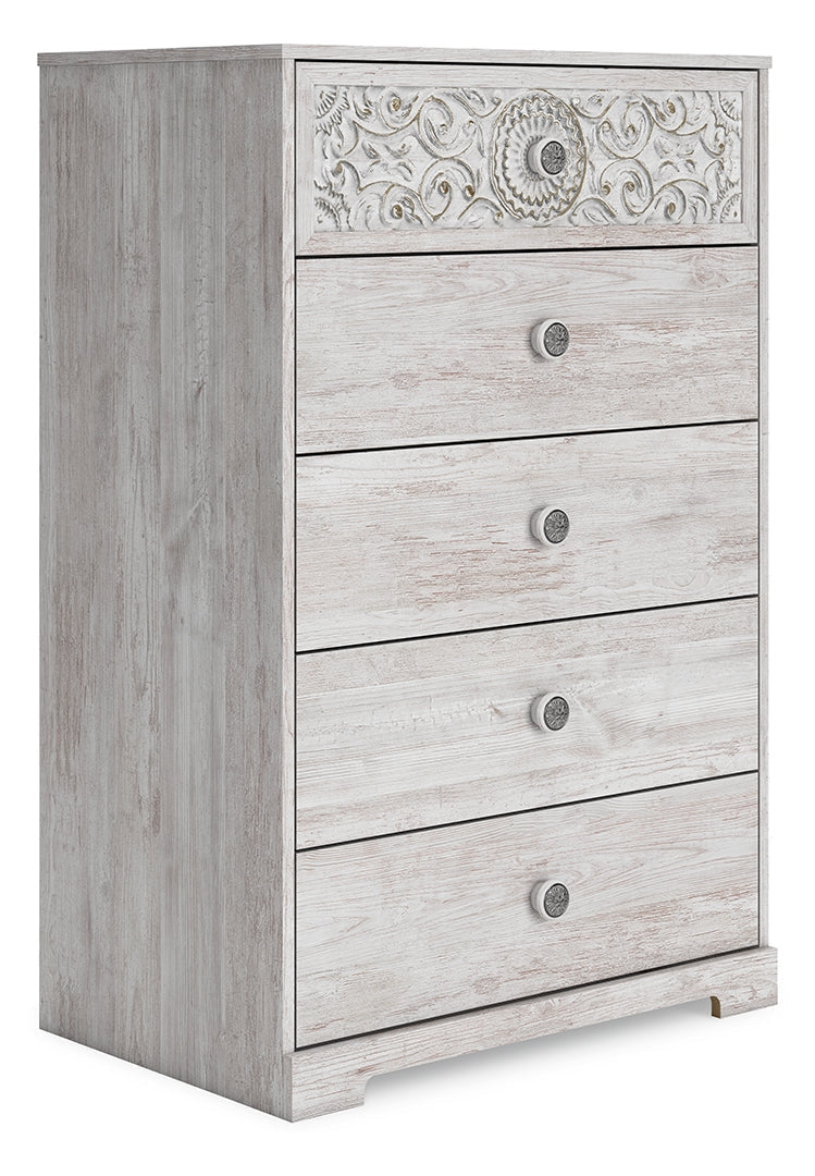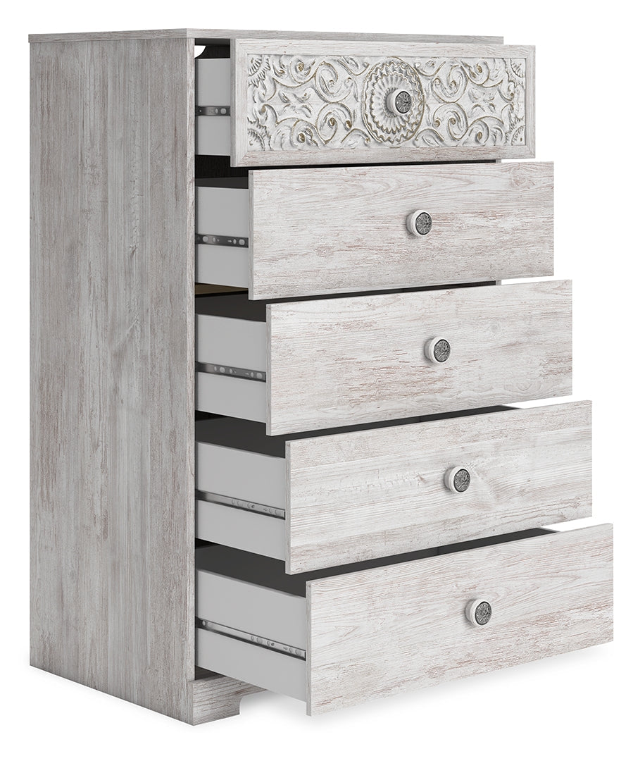 - 5 smooth-gliding drawers with vinyl-wrapped sides and back