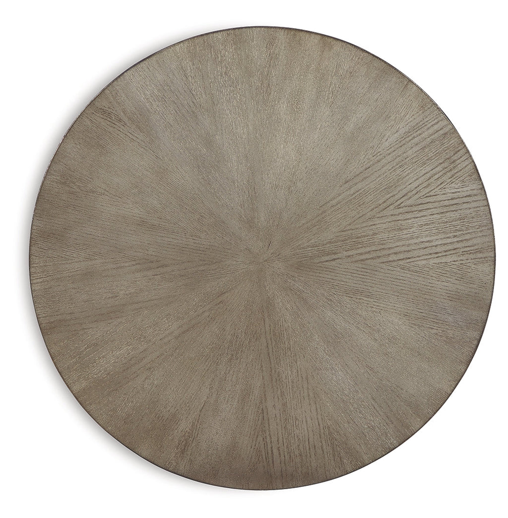 With the addition of a striking accent piece, one can take any room from ordinary to extraordinary. And this round accent table has just what it takes to elevate your home's decor to astonishing new heights. Made with wood veneer in a warm metallic silvertone finish and complemented by metal tubular legs, its artful composition and spartan design mesh seamlessly into any modern living space.