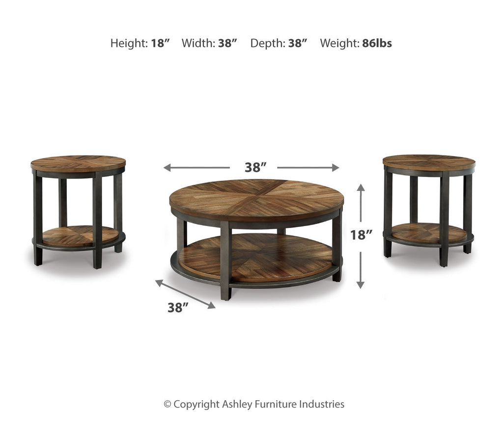 - Cocktail table : 0" : 38" W x 38" D x 18" H