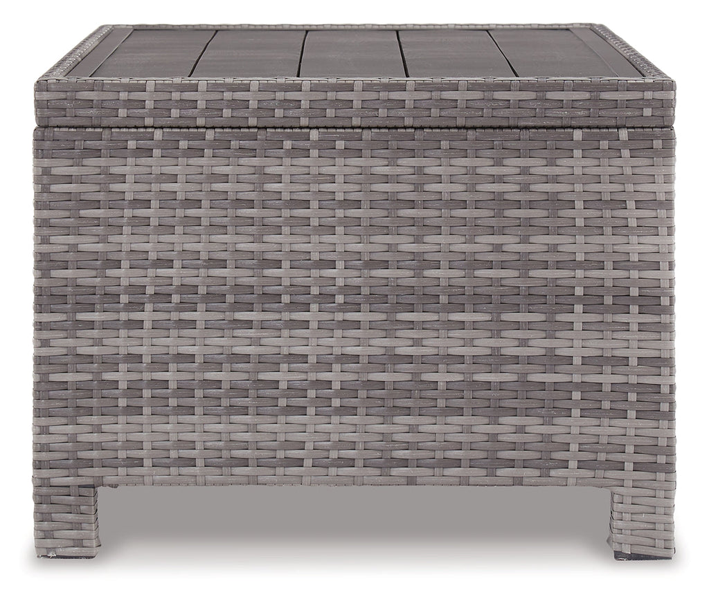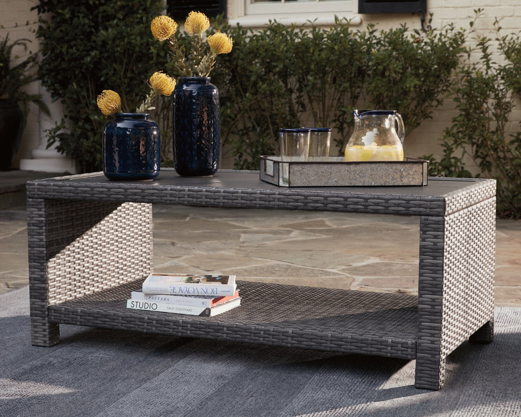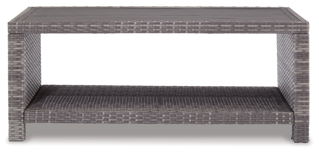 Bring a coastal cool vibe to your outdoor living space with this coffee table. What looks like rattan is actually handwoven resin wicker in gray with all-weather protection. Rest assured, the planked wood-look top is water and stain resistant. Concealed aluminum frame is powder coated for seasons of carefree use.