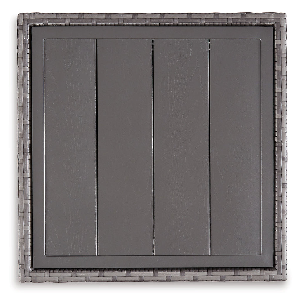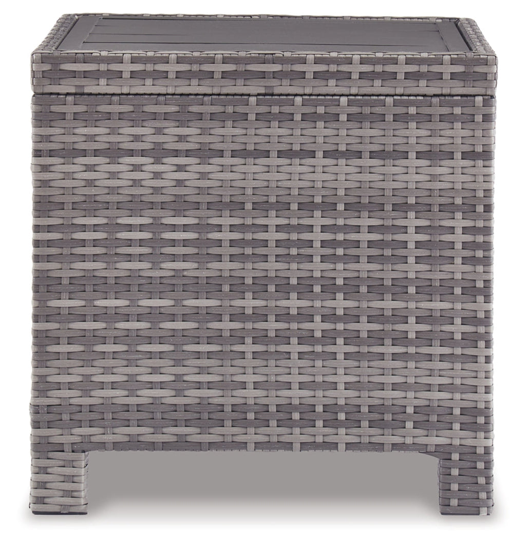 Bring a coastal cool vibe to your outdoor living space with this end table. What looks like rattan is actually handwoven resin wicker in gray with all-weather protection. Rest assured, the planked wood-look top is water and stain resistant. Concealed aluminum frame is powder coated for seasons of carefree use.