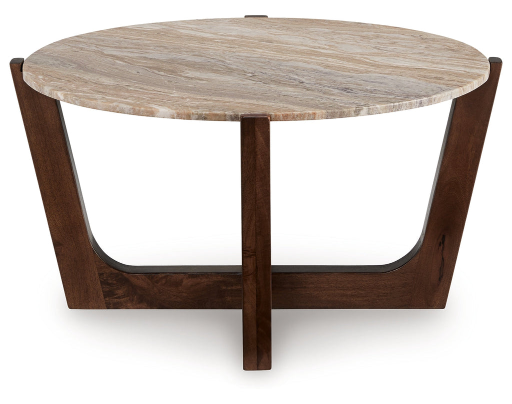Not only does the stunning Tanidore coffee table enhance the aesthetic of your home, but it also provides practicality and functionality. Crafted with a mango wood frame and natural marble top, its solid construction and durable materials ensure years of reliable use. It's the perfect blend of contemporary style and timeless elegance.