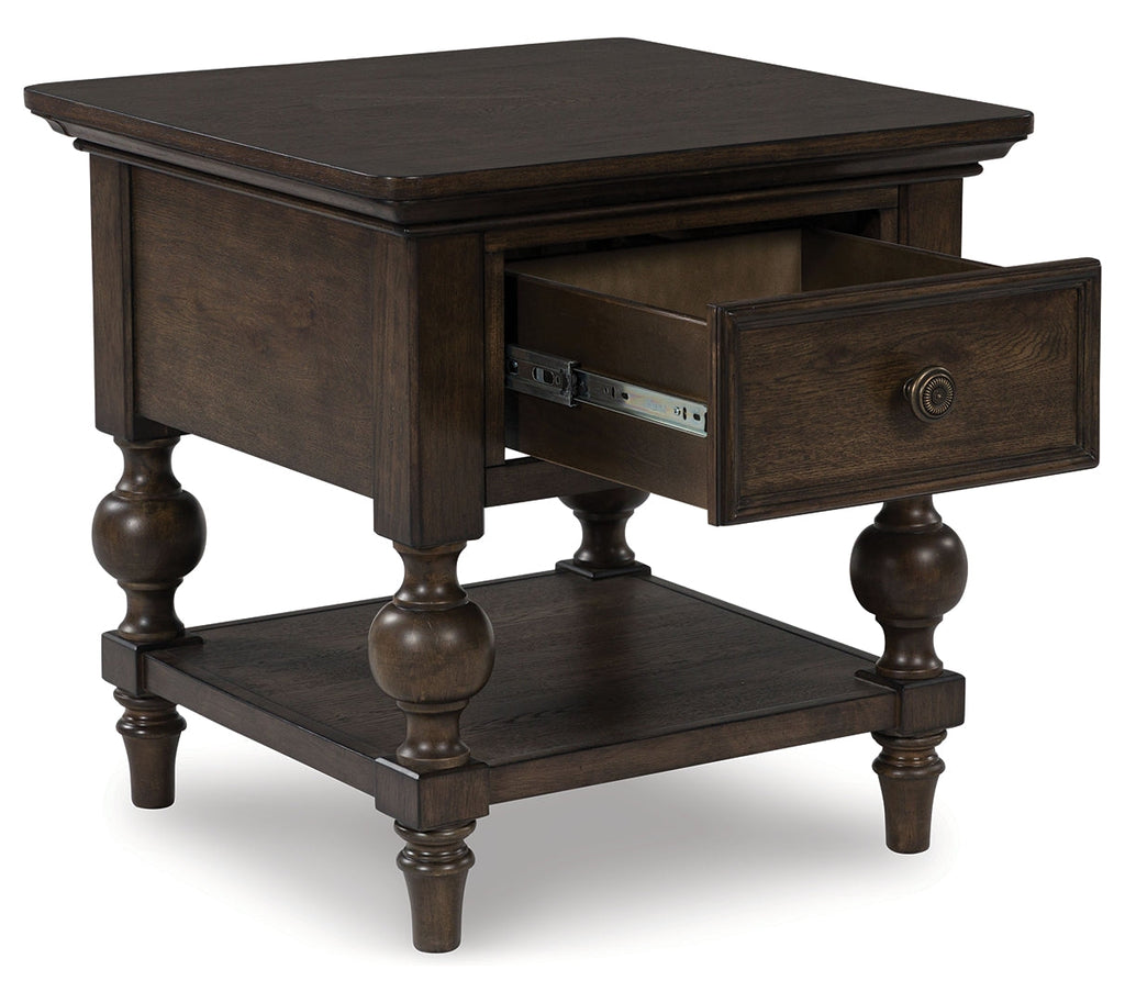 For those who appreciate a time-honored aesthetic with understated elegance, this table package brings home a timeless look. Its rich brown walnut finish merges seamlessly with profiled tops and traditional baluster turned legs for a richly classic appeal. And did we mention there's a lower shelf to display your whatnots?