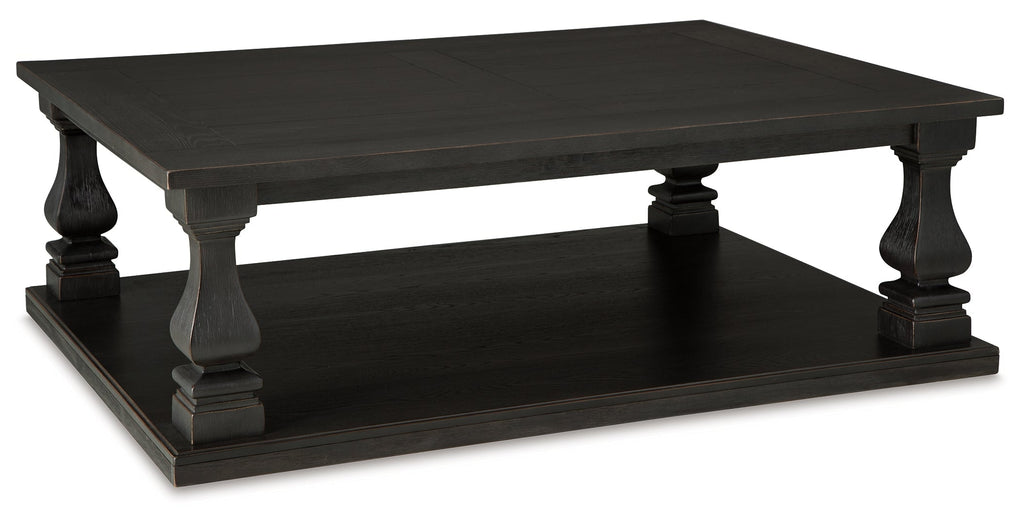Seeking a sophisticated way to round out your vintage-inspired living room? Enter: this coffee table. The black rubbed finish recalls antiqued aesthetics while remaining versatile. Dress up the lower shelf with your favorite decor. Or store throws and other sofa-side essentials.