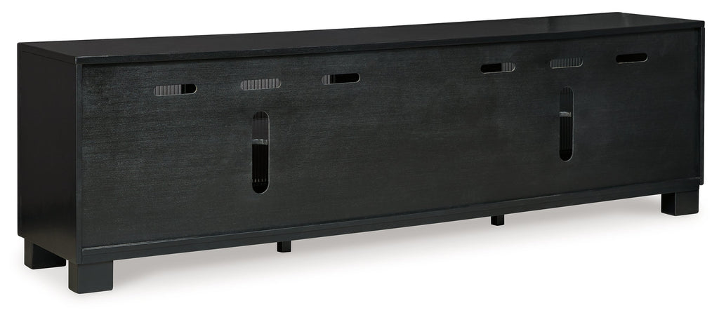 If you are a lover of simplicity, this TV stand is the perfect choice. With a black finish, a casual contemporary design and spacious storage cabinets, it provides functional style wherever it’s displayed. And this large media cabinet accommodates flat-screen TVs up to 85 inches.