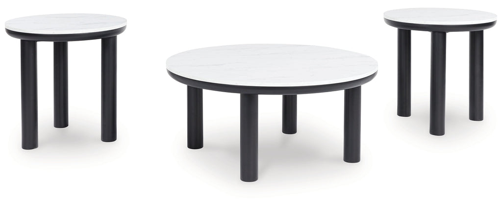 - Includes round coffee table and 2 round end tables