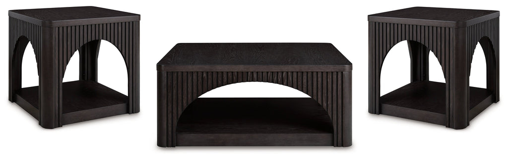 This occasional table package exudes style and sophistication with its dark French black finish. Architecturally designed with unique arches and lattice details, this set adds on-trend elegance to your existing home decor.