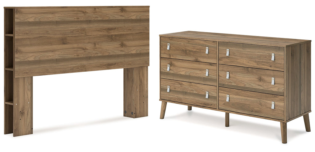 Dare to take minimalism to the max. This bedroom package has a richly relaxed feel thanks to its honey brown finish over replicated wood grain. Two sets of faux leather pulls in light brown and gray allow you to customize the drawers to suit your space.