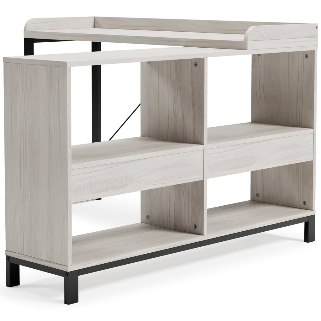 Love a clean, uncluttered aesthetic? Make it work to your advantage with this desk. A simply striking choice in home office furniture, it has an unmistakable fresh feel thanks to a whitewashed finish and gunmetal frame. The perfect small space solution, this desk with hutch offers extra space to work, create or play.