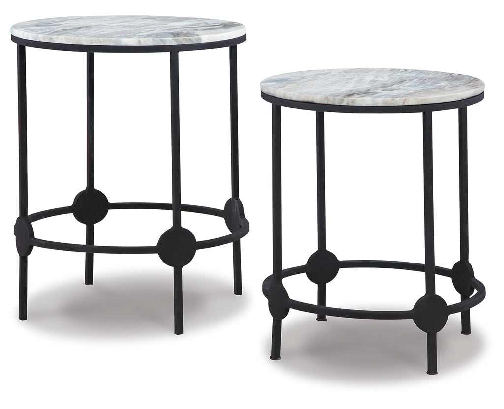 Make a dynamic statement while providing a convenient spot for a glass, book or plant. Pairing natural marble and metal legs, this accent table set adds a compelling piece of decor to your home.