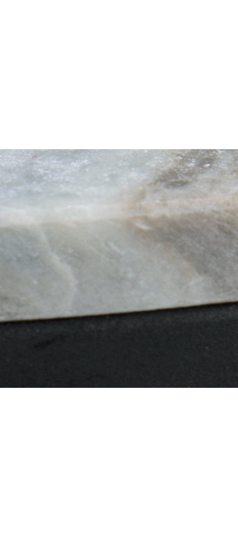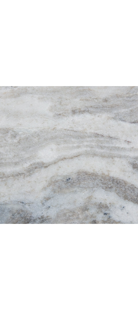 - Marble tabletop with tones of gray, white and tan