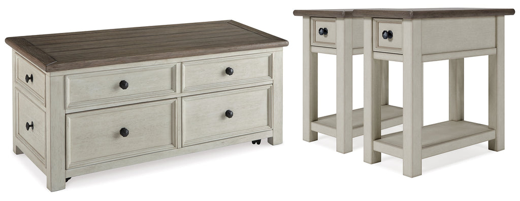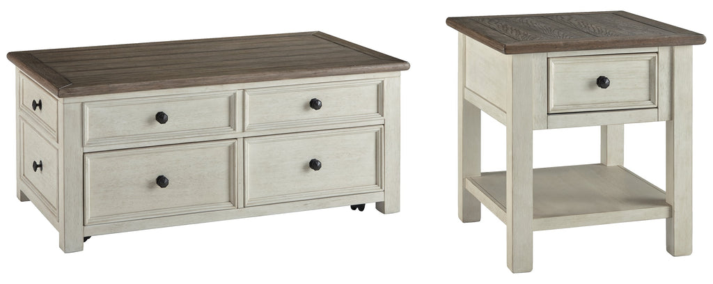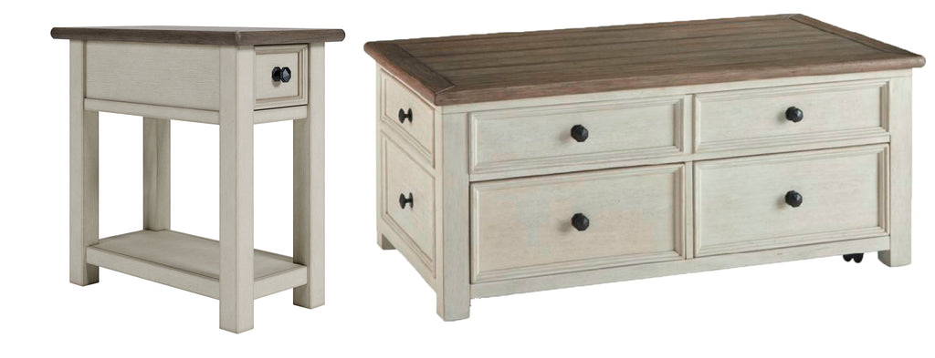 Whether your style is farmhouse fresh, shabby chic or country cottage, you’ll find this table package dressed to impress. The textured two-tone finish pairs weathered oak with antiqued white for a vintage look. Display and store items on the plank-and-frame style top, open shelf and smooth-gliding drawer. The lift-top design makes it easy to store, serve and showcase your favorite things.