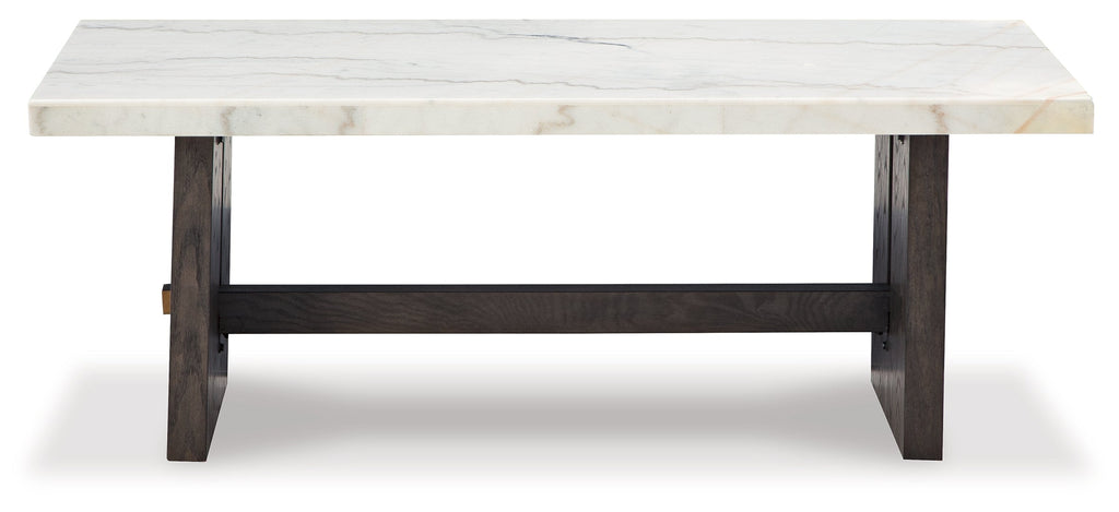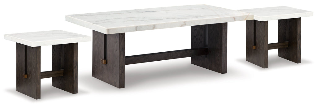 Dressed to thrill, the simply stunning Burkhaus occasional table package offers a high-design look at a down-to-earth price. Ultra-sleek lines are accentuated with a dark waxy brown oak finish that’s so easy on the eyes. Clean-lined and modern, the plinth bases and natural marble tabletops showcase quality craftsmanship and attention to detail. This set is the perfect centerpiece for a living room or family space, with a timeless look that's made to last.