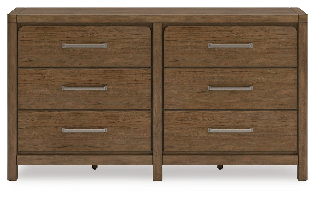 This dresser sits comfortably at the intersection of modern lodge and farmhouse aesthetics. Your warm and welcoming disposition is reflected in the charming architectural elements and light brown glazed finish. Even with its poise, the dresser remains practical. Smooth-gliding drawers tuck away necessities, defining your bedroom with reliable function and style.