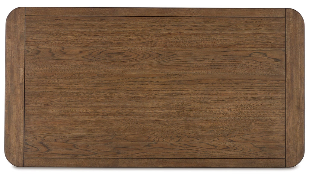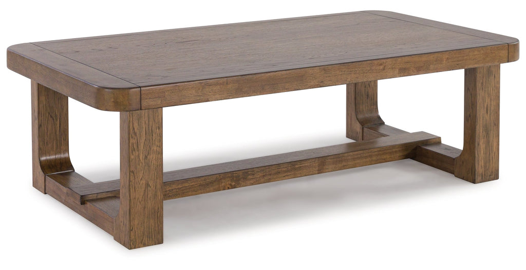 This coffee table sits comfortably at the intersection of modern lodge and farmhouse aesthetics. Your warm and welcoming disposition is reflected in the charming architectural elements and light brown glazed finish. Even with its poise, this coffee table remains practical. Its softly rounded corners keep kids safe and your living room stylish.