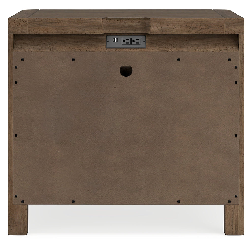 This nightstand sits comfortably at the intersection of modern lodge and farmhouse aesthetics. Your warm and welcoming disposition is reflected in the charming architectural elements and light brown glazed finish. Even with its poise, the nightstand remains practical. Included USB ports keep you charged up for late-night scrolling, defining your bedroom with reliable function and style.