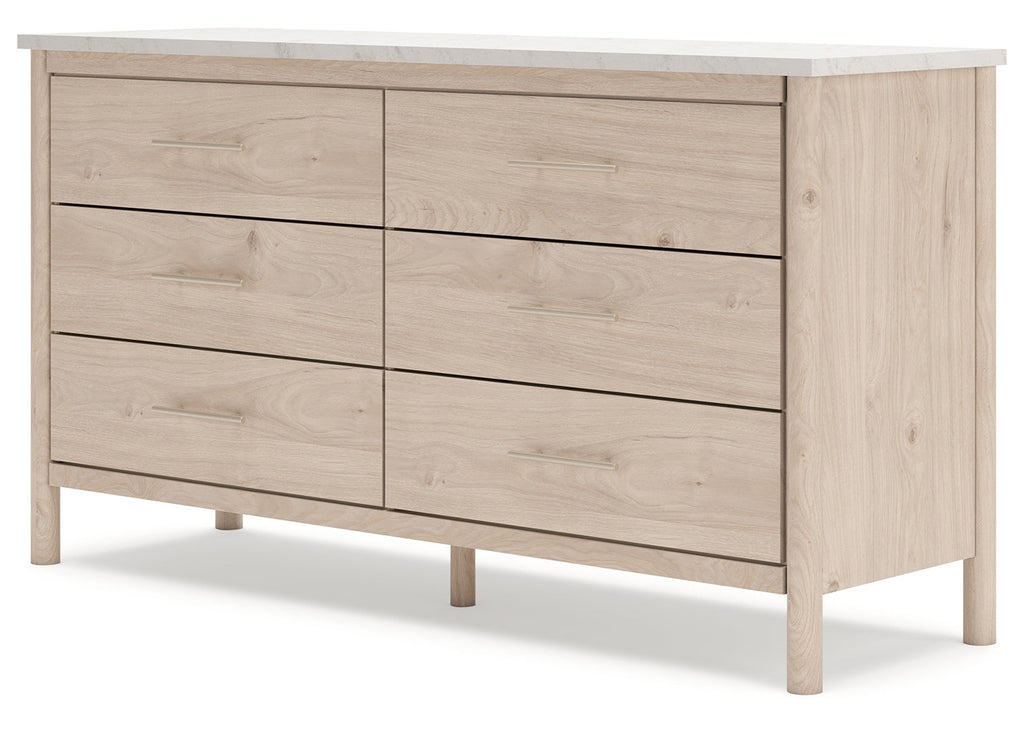 Transform your bedroom with this dresser. With its clean lines and replicated marble top, it exudes a minimal and sophisticated boho style. Tailor your space and create the perfect environment for sweet dreams.