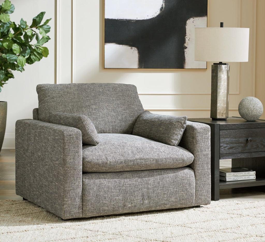 On the days when rest and relaxation seem out of reach, this oversized chair provides a positively plush seating experience. Its feather-fiber blend cushions invite you to float away in cloud-like comfort. Striking granite-hued upholstery and a streamlined frame grant this cozy piece a look well-suited to contemporary spaces.