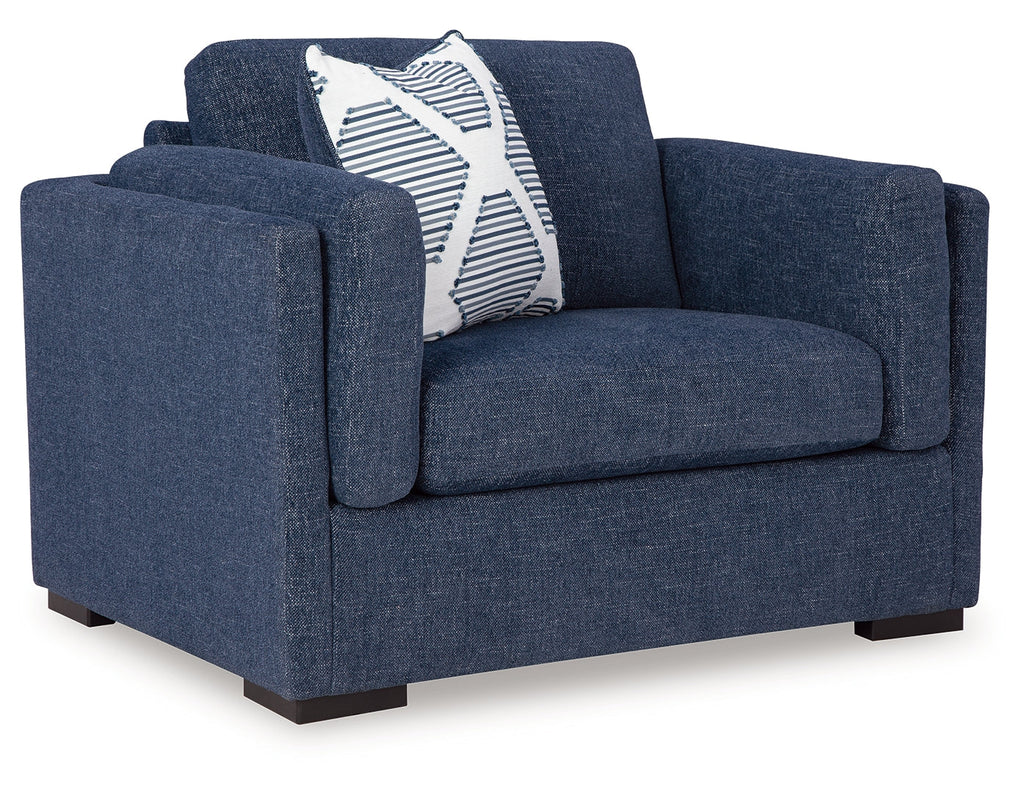 Casual contemporary style, meet carefree lounging. With this oversized chair, you don’t need to sweat the small stuff. Thanks to its fresh navy hue, you can stay right on trend when you kick back and relax. And the arm bolster pillows keep you extra comfy. Time for a touch-up? Machine-washable Next-Gen Nuvella™ covers make upkeep a breeze.