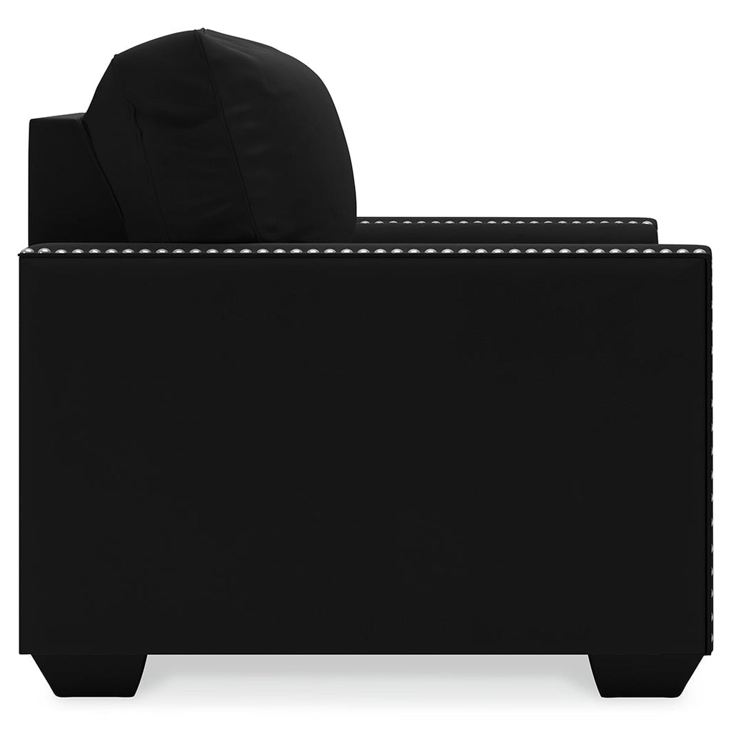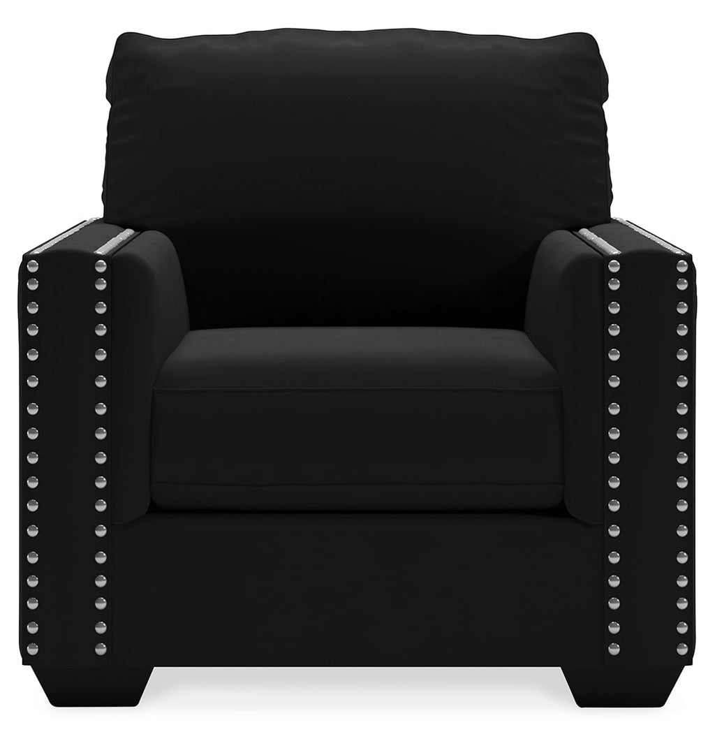 Raise your standard of living with this chair in onyx black. Reserved exclusively for those with a penchant for high-glam home decor, this ultra-chic chair is dressed to impress with a clean-lined profile and sleek track arms punctuated with nailhead trim. Easy on the eyes and alluring to the touch, this decidedly contemporary chair is covered in a low-pile soft velvet that’s impossible to resist.