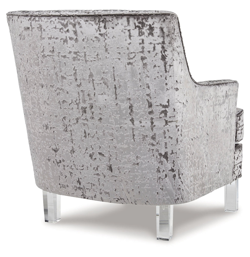 This accent chair with shelter arm styling merges contemporary and traditional styling in the most beautiful way. The combination of polyester crushed velvet upholstery and tapered clear acrylic legs makes for one cool contrast. Combining comfort and fashion-forward design for the modern enthusiast.