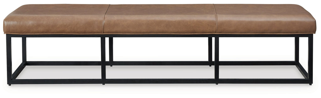 This accent bench takes a contemporary approach to everyday function. Showcasing a sleek combo of caramel leather upholstery and a black frame, it's a chic and convenient seating solution. Place this bench by the entryway, or at the foot of your bed, as a spot for slipping on shoes or resting bags and purses.