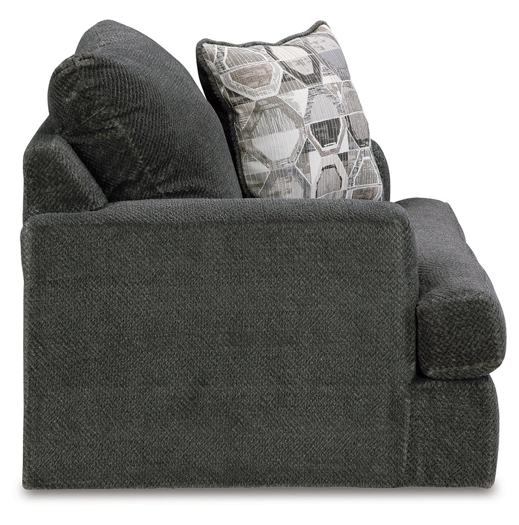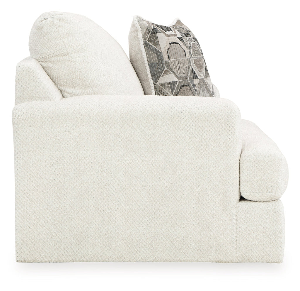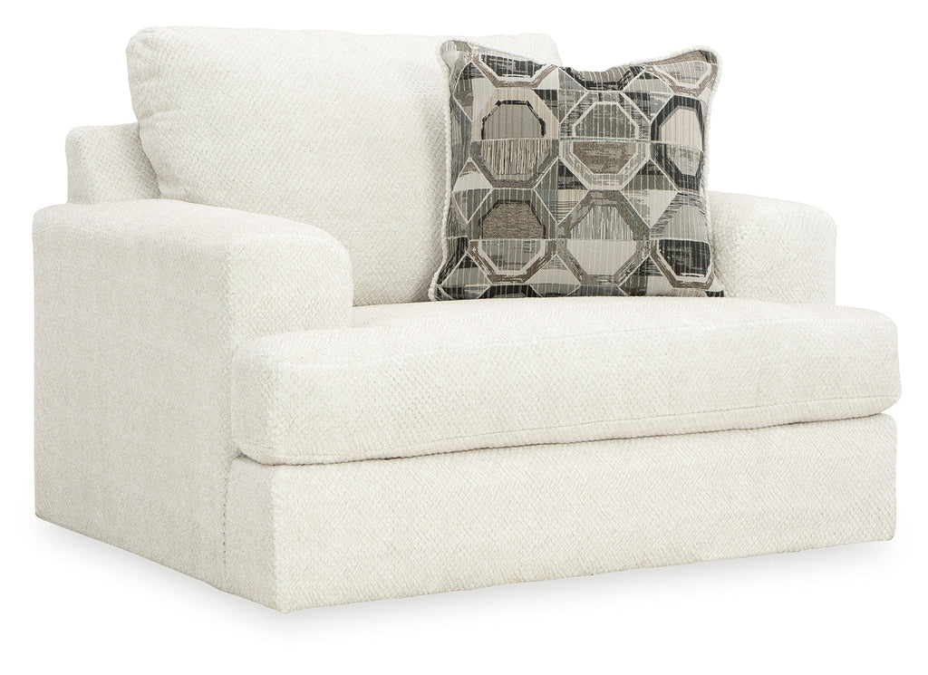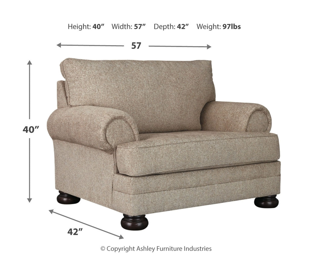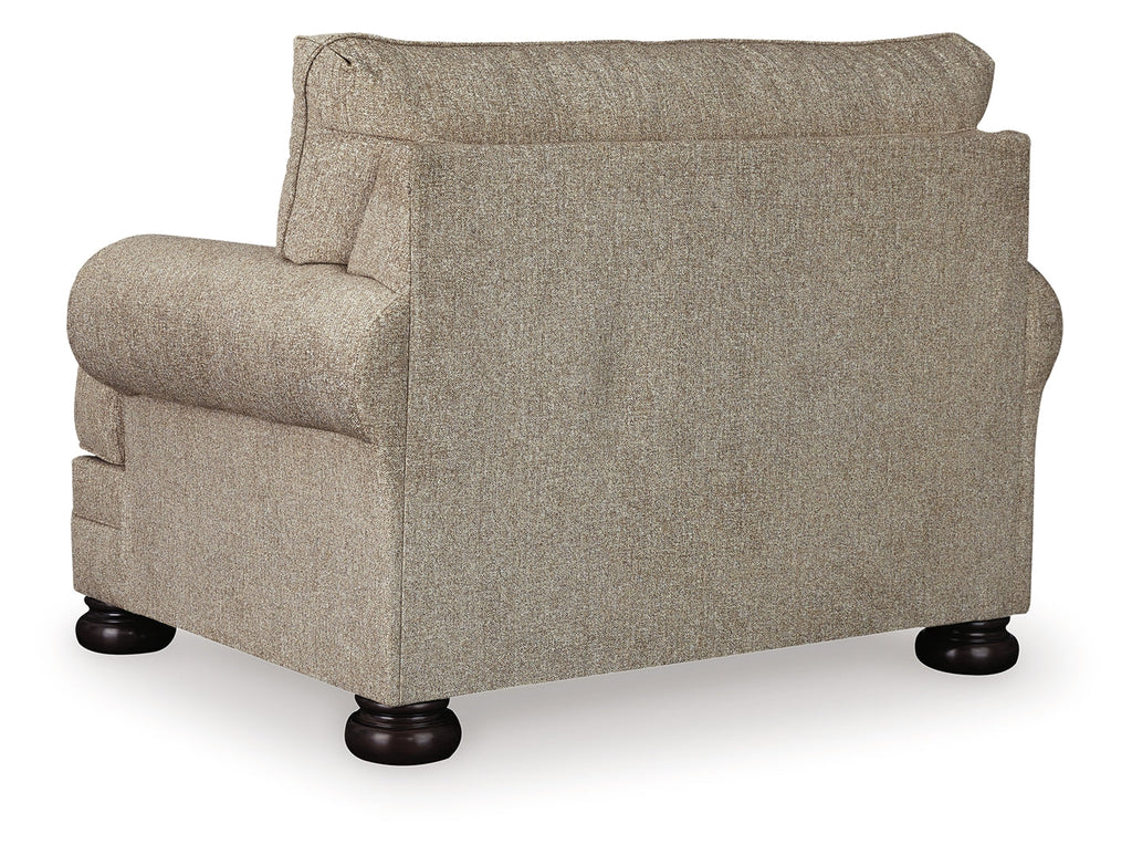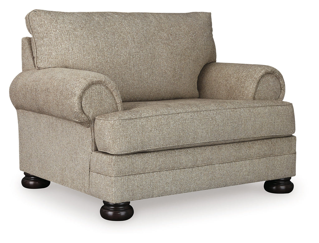 This sumptuously styled oversized chair proves that a richly traditional look doesn’t have to break the bank. Flared effect gives the classic roll arms a relaxed feel, while the choice of a plush chenille upholstery in oatmeal is earthy elegance at its best. Distinctively turned bun feet in a dark finish add to the chair’s substantial presence.