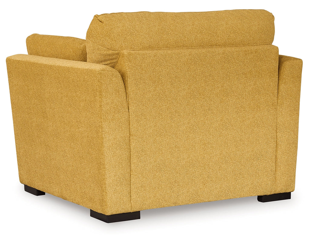You want your home to reflect your modern, trendy eye for design. This oversized chair is here to help. Bold, bright and beautiful, it adds a fashion-forward pop of color to your living room. Velvet-like upholstery and matching bolster pillows keep comfort at top of mind, whether you're lounging around or entertaining guests. How’s that for fresh style and functionality?