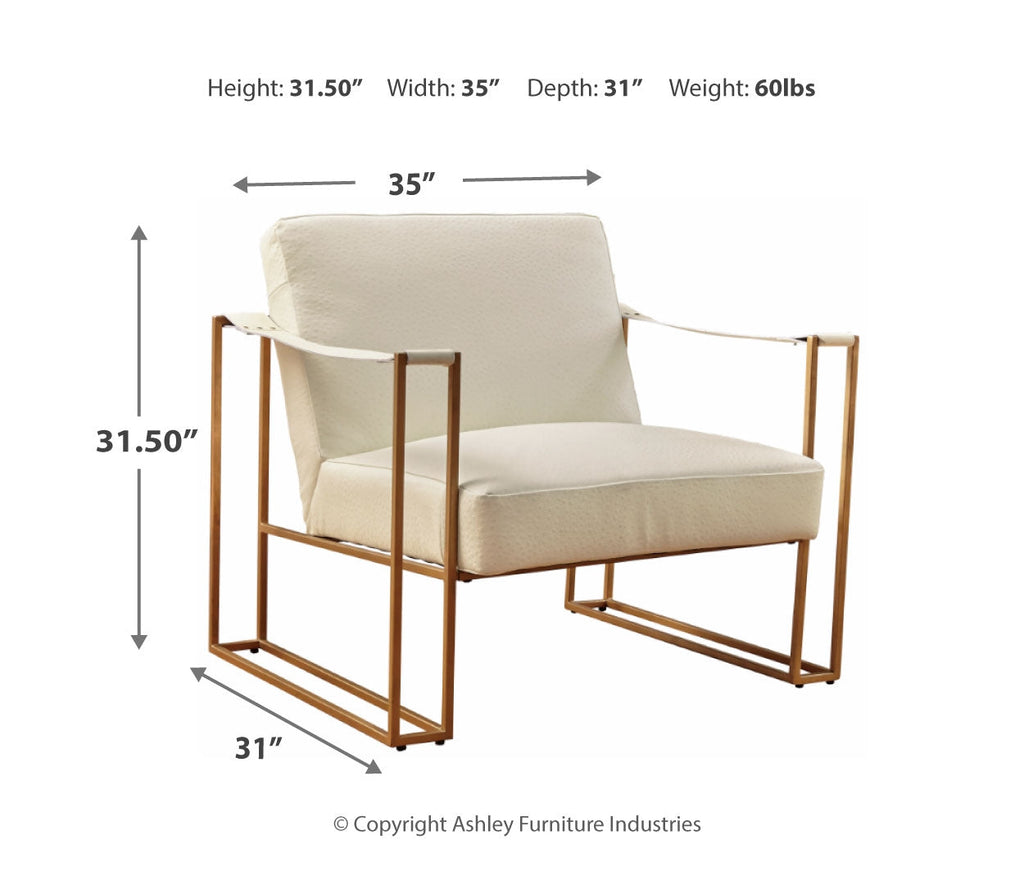 Less is so much more with this ultra-cool accent chair. A mastery in open-concept living, this chair with sturdy metal base is enriched with thickly padded box cushions wrapped in a cream leather with ostrich patterned embossing. Leather armrests are a strapping touch.