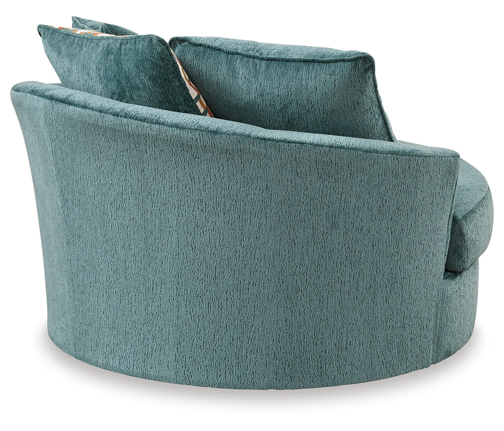 Express your uniquely chic style with this oversized swivel accent chair. Its fresh approach to color creates a vibrant yet refined vibe in your living room that friends and family will love to lounge in. And you can count on classic comfort—the chair’s plush upholstery keeps day-to-day relaxation in mind along with a 360-degree swivel to complete the curated look.