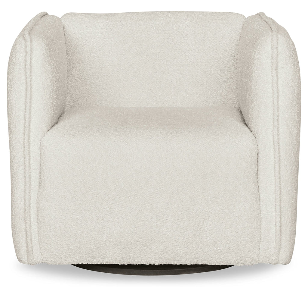 Take clean-lined comfort for a spin with this swivel accent chair. Its neutral upholstery is made deliciously dramatic by flange welting and a boucle-like weave. With 360-degree swivel motion, this chair merges forward-thinking function with a contemporary aesthetic.