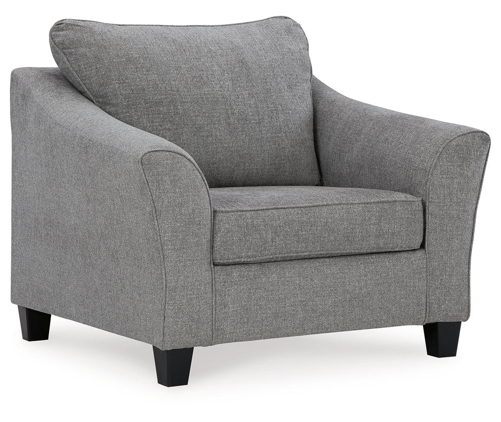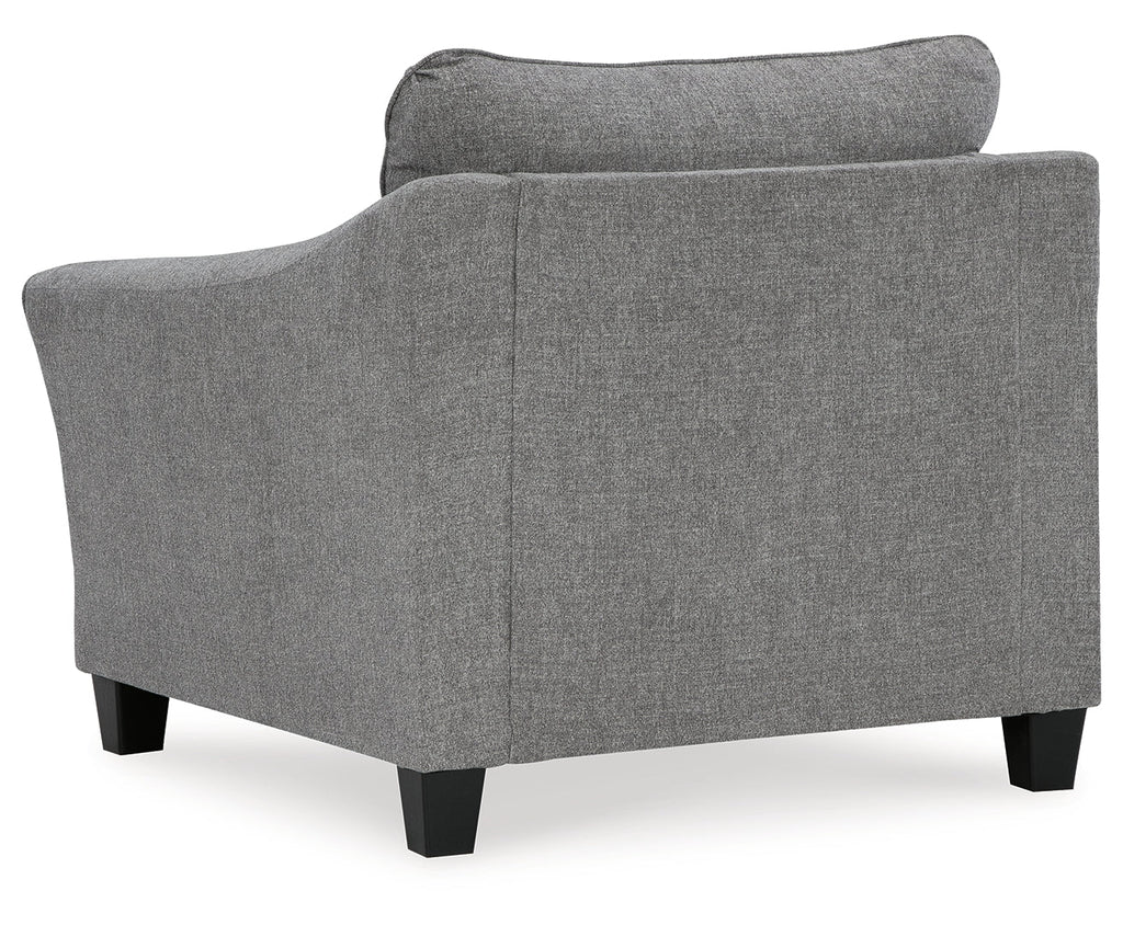 - Attached back and loose seat cushion