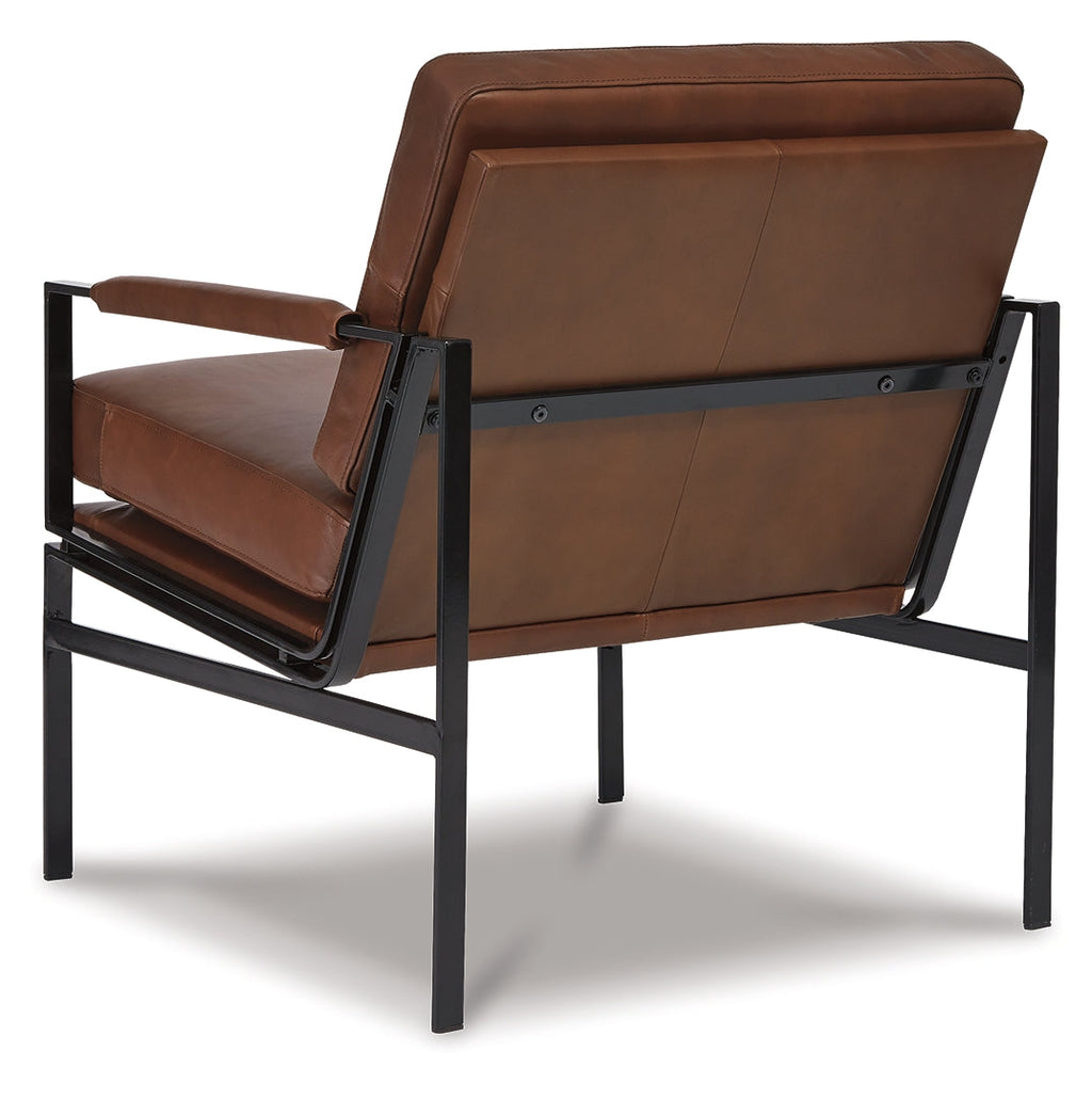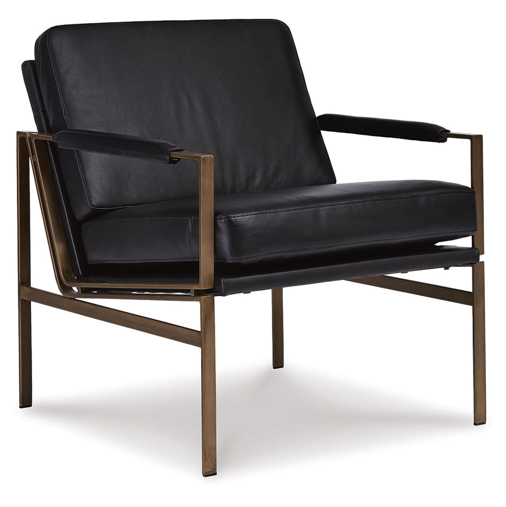 This accent chair has an ultra-modern vibe and indulgent feel. Its metal frame is a chic complement to brown leather seating. With its bronze-tone finish and urban industrial style, this accent chair impresses with high-end looks priced to entice.