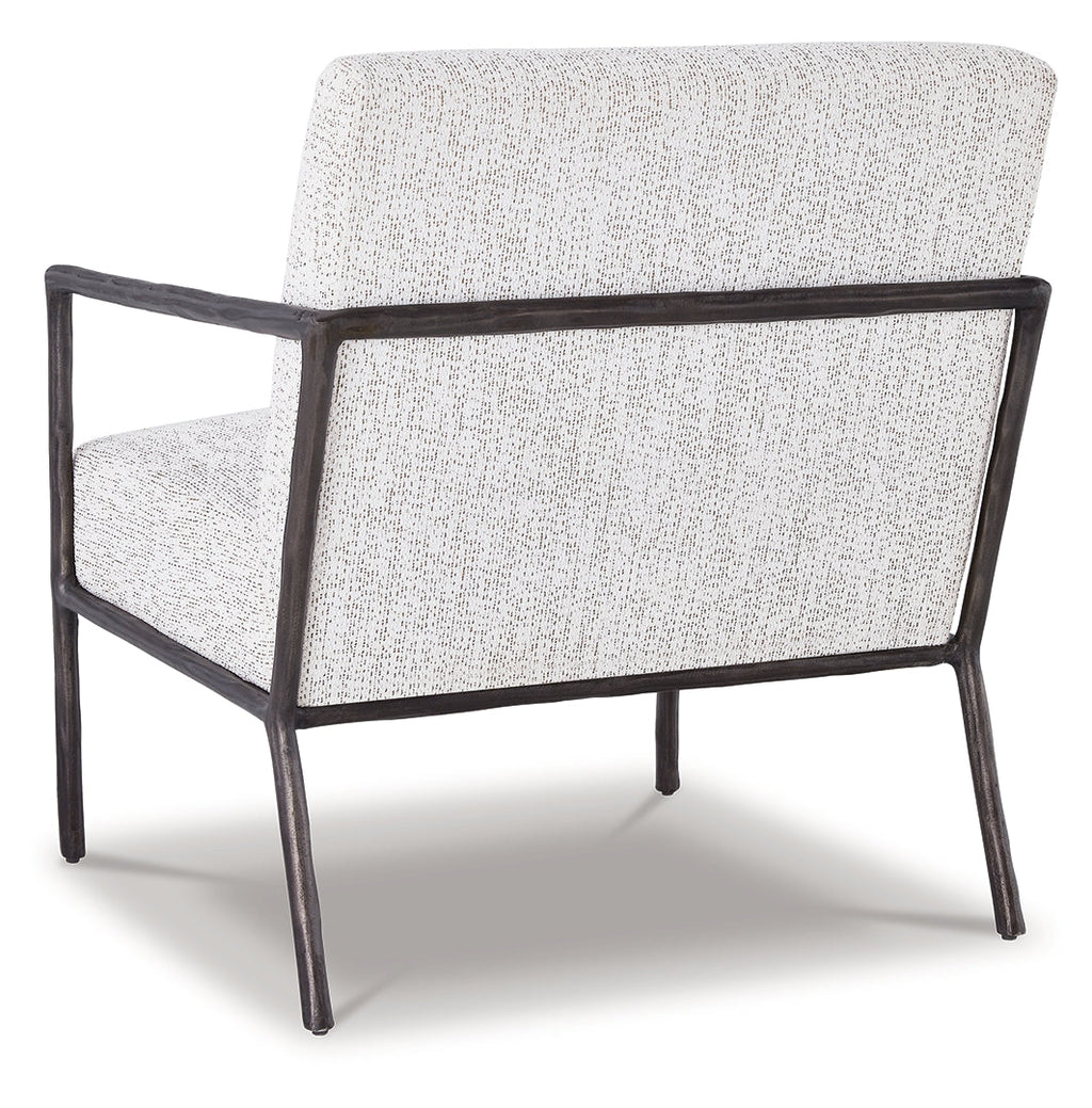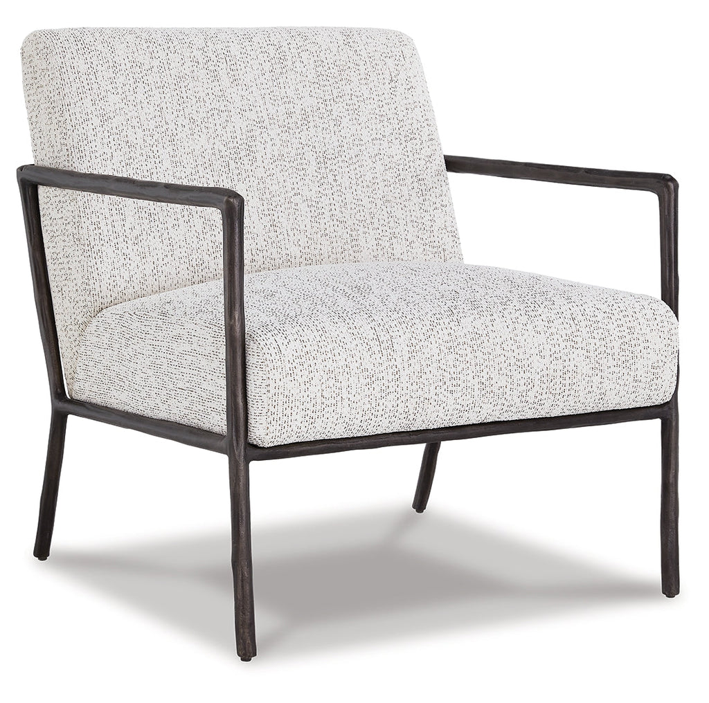 A modern take on classic design, this accent chair provides both flair and function. Richly neutral upholstery gives off a vibe of easy elegance, bringing home high-end style for everyday living. An antiqued black finish on the frame has an edgy look that remains versatile, suiting spaces from casual to contemporary.