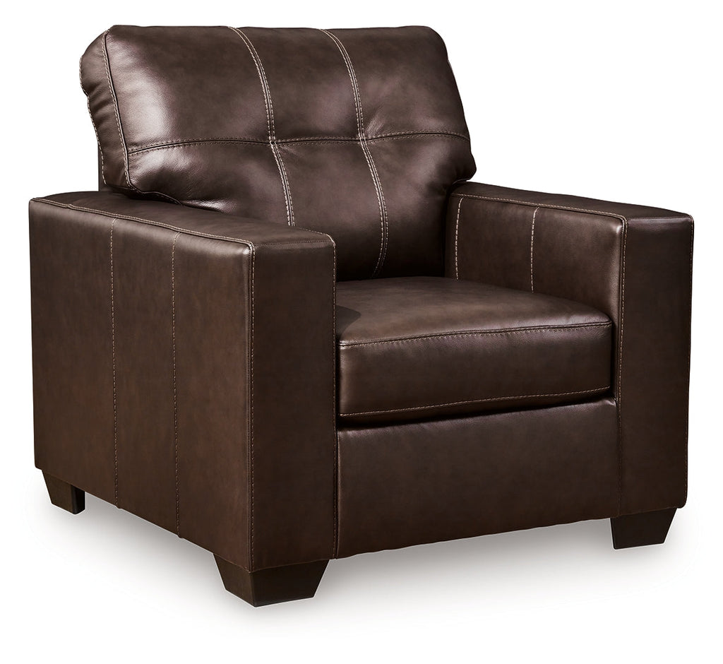 Whether your inspiration is contemporary or classic, this chair's good looks and affordable luxury are hard to deny. Its clean-lined silhouette and skillfully matched leather and faux leather upholstery offer a transitional sensibility that's right at home in your home. And the ample cushions with tufted details invite you to relax in comfort.
